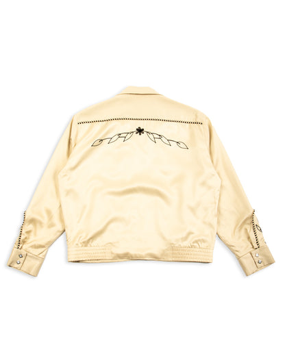 The Embroidered Rayon Western Jacket is a stunning piece of McCoy's outerwear. Inspired by the ornamental westernwear developed by Hollywood in its depiction of dude ranches and cowboy culture, as well as the highly embellished outfits of Nashville country performers from the 40s-60s, it's got an elevated design and old school fit.