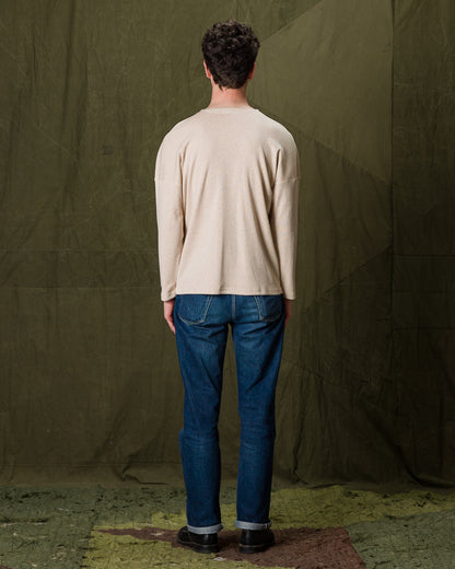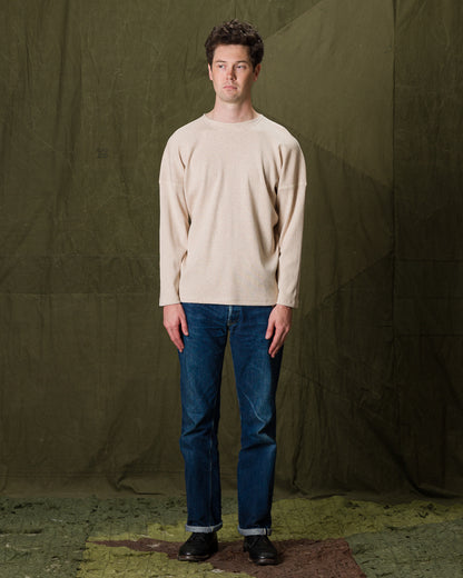 With a slightly relaxed fit, the Extra Cotton Rib Crewneck is shockingly comfortable thanks to its 100% cotton composition and robust rib-knit body. It's got an exaggerated shape, with dropped shoulders and long sleeves. The cuffs, hem, and collar are all made from the same knit as the body, rather than a different ribbing - the collar is particularly interesting, being a crewneck fit with a "flat" shape that tapers in width.