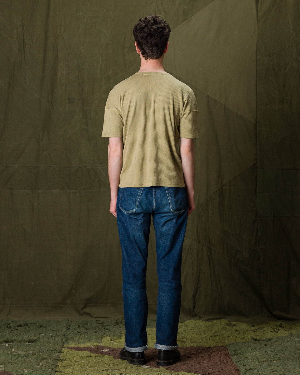 With a standard fit, the Extra Cotton Rib Crewneck is shockingly comfortable thanks to its 100% cotton composition and robust rib-knit body. It's got a classic tee shape, with plain sleeves and a long enough torso to wear tucked in. The cuffs, hem, and collar are all made from the same knit as the body, rather than a different ribbing - the collar is particularly interesting, being a crewneck fit with a "flat" shape that tapers in width.