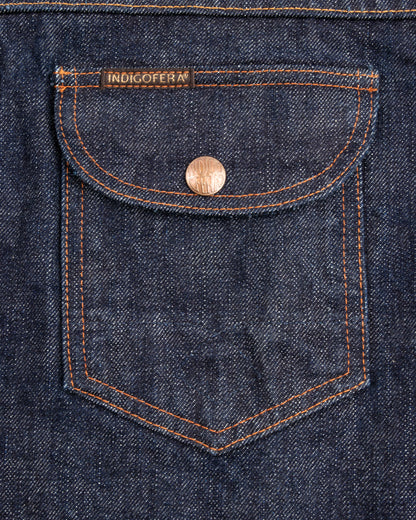 The hardware is equally impressive - custom Indigofera brass snaps close up the placket, pockets, and cuffs, while custom copper rivets reinforce stress points. The two chest pockets are secure and perfect for things like keys or a cardholder and the sleeves cuff easily for maximum comfort on a warm (but not hot) day.
