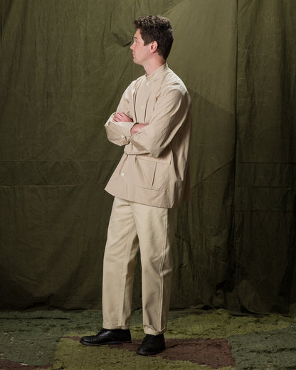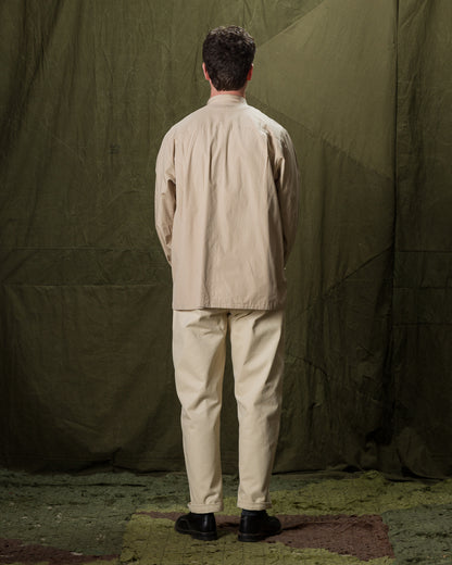 It's made from a superfine 100% cotton broadcloth that is double-layered for additional structure and durability. It's an immediately soft fabric, with a comfortable texture and neutral drape that feels like you're hardly wearing anything. It's been finished with a rinse, handling the initial shrinkage and creating subtle puckering at some of the seams. Fairly lightweight, it's a good layering fabric, more suited to warmer weather if worn alone, but easily kept in rotation all year long if stacked with other more seasonally-appropriate textiles & garments.