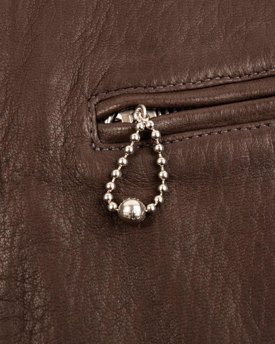 Featuring a more old school fit, with a pleated back and two side tab adjuster belts at the back, it drapes very naturally your torso. Sticking with the theme of durable, high quality materials, the lining is made from a smooth cotton satin fabric, and the storm cuffs feature wool knit ribbing beneath the leather exterior. The front of the jacket closes up with 1930s pin lock zipper, with period accurate urea buttons at the cuffs and a ball-chain zip at the breast pocket.