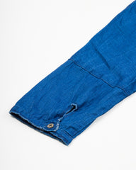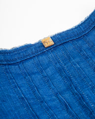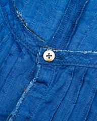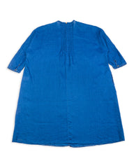 Made from a comfortably lightweight French linen, this full-length dress features a relaxed a-line silhouette, a band collar, and a pintuck design through the torso. The entire thing is indigo-dyed, giving it a rich blue color that will continue to fade and develop over time.