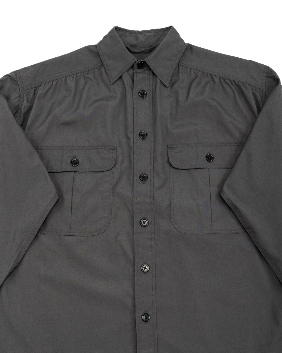 A classic workshirt with all the fine details you'd expect from Monitaly. It features a gusseted chest pockets that expand for more storage, sewn together with a double-needle top stitch for durability. The yoke is gathered at the front and back which help maintain good structure through the shoulder, while allowing for more drape and room in the body.