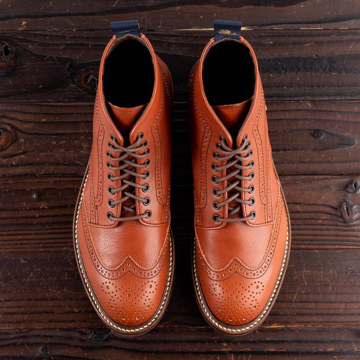 Glover Brogue Boots - Camel Vacchetta
