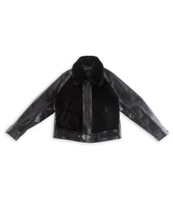 The horsehide grizzly jacket is one of the most serious leather jackets ever conceived. The biker equivalent of the sheepskin flight jacket, grizzly jackets combine sturdy horsehide bodies with extensive mouton sheepskin trims, armoring any wearer against wind and cold. Attractions' Lot. 500 Grizzly is one of the best we've ever handled, with a gorgeous white mouton body that contrasts the black horsehide beautifully.