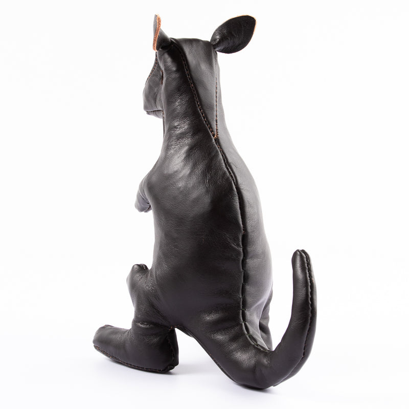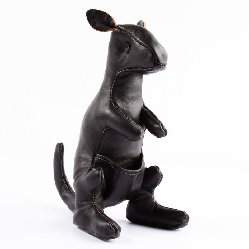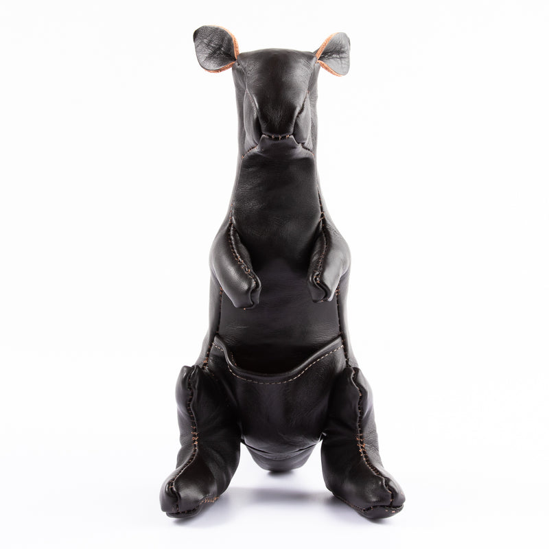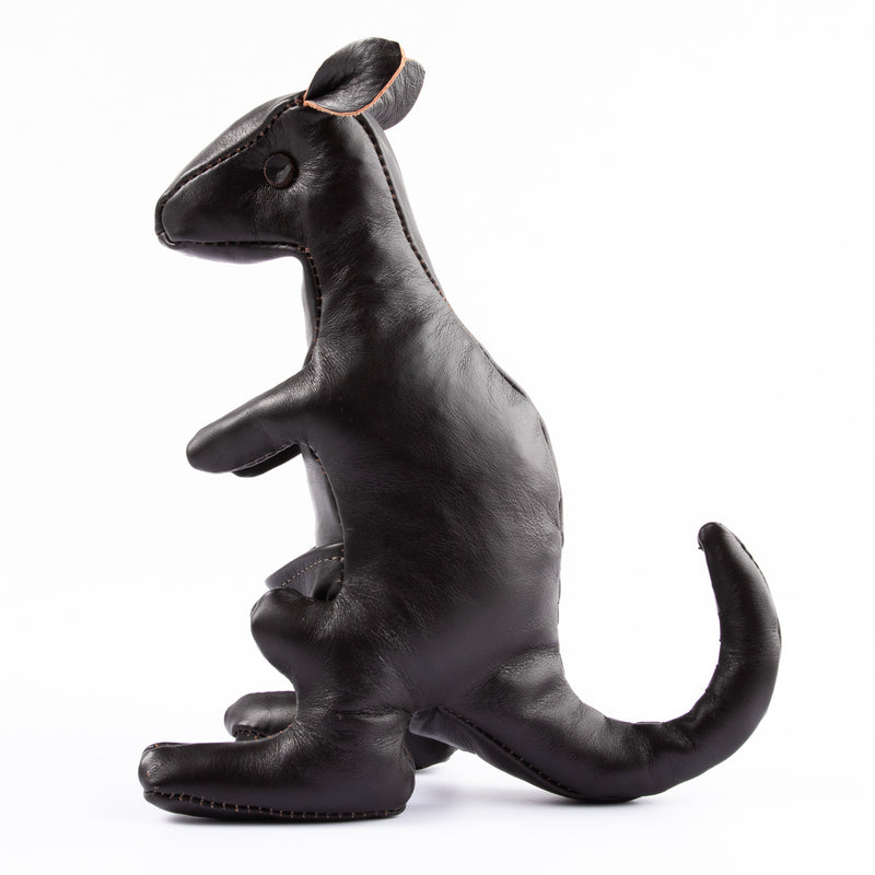 Made from the same vegetable-tanned horsehide as their renowned flight jackets, these are a hardy and shiny tea-core leather - but they're also stuffed animals so I'm not sure how relevant the tea-core thing is. The kangaroo comes in at 10.25" tall, and 9.25" long.