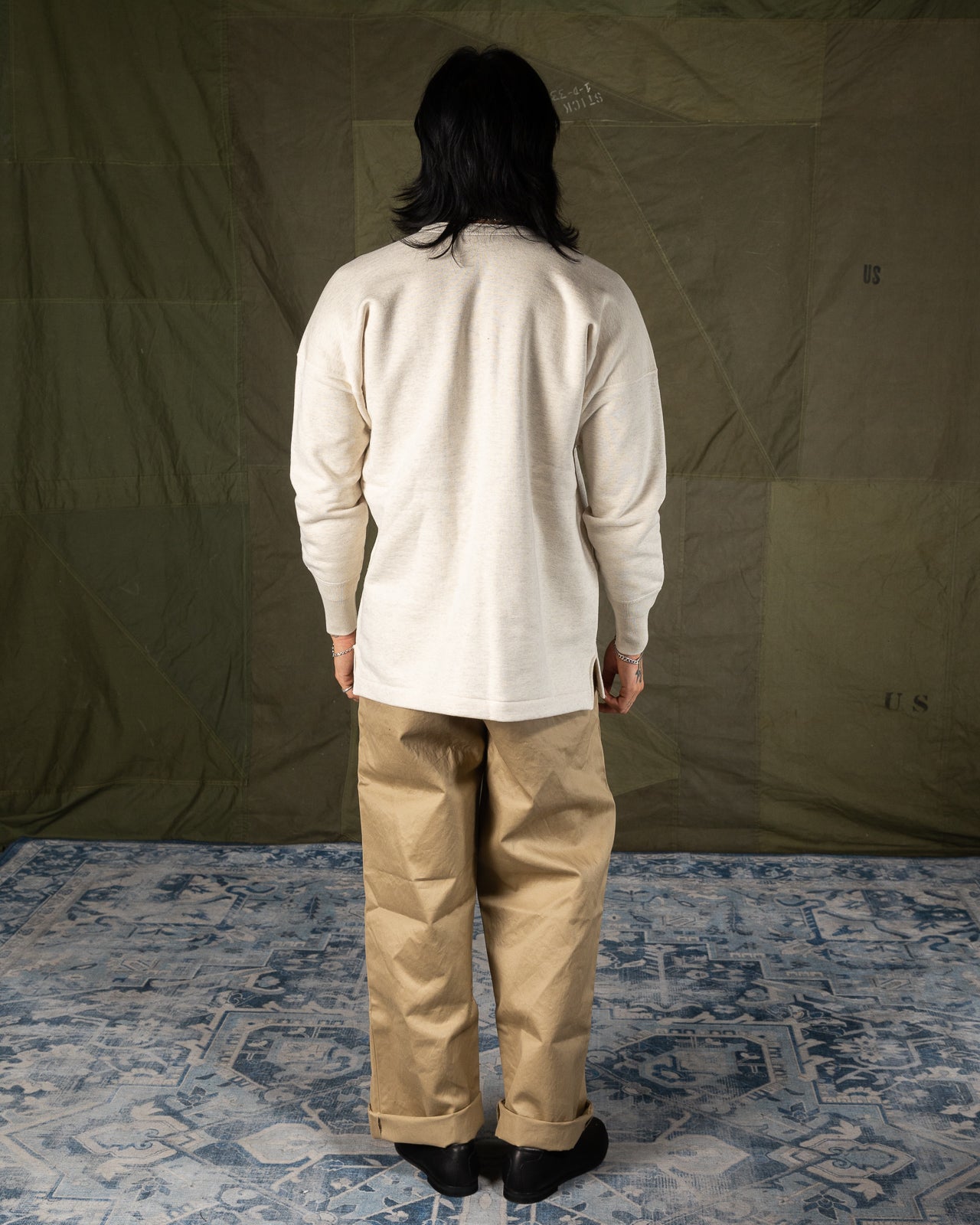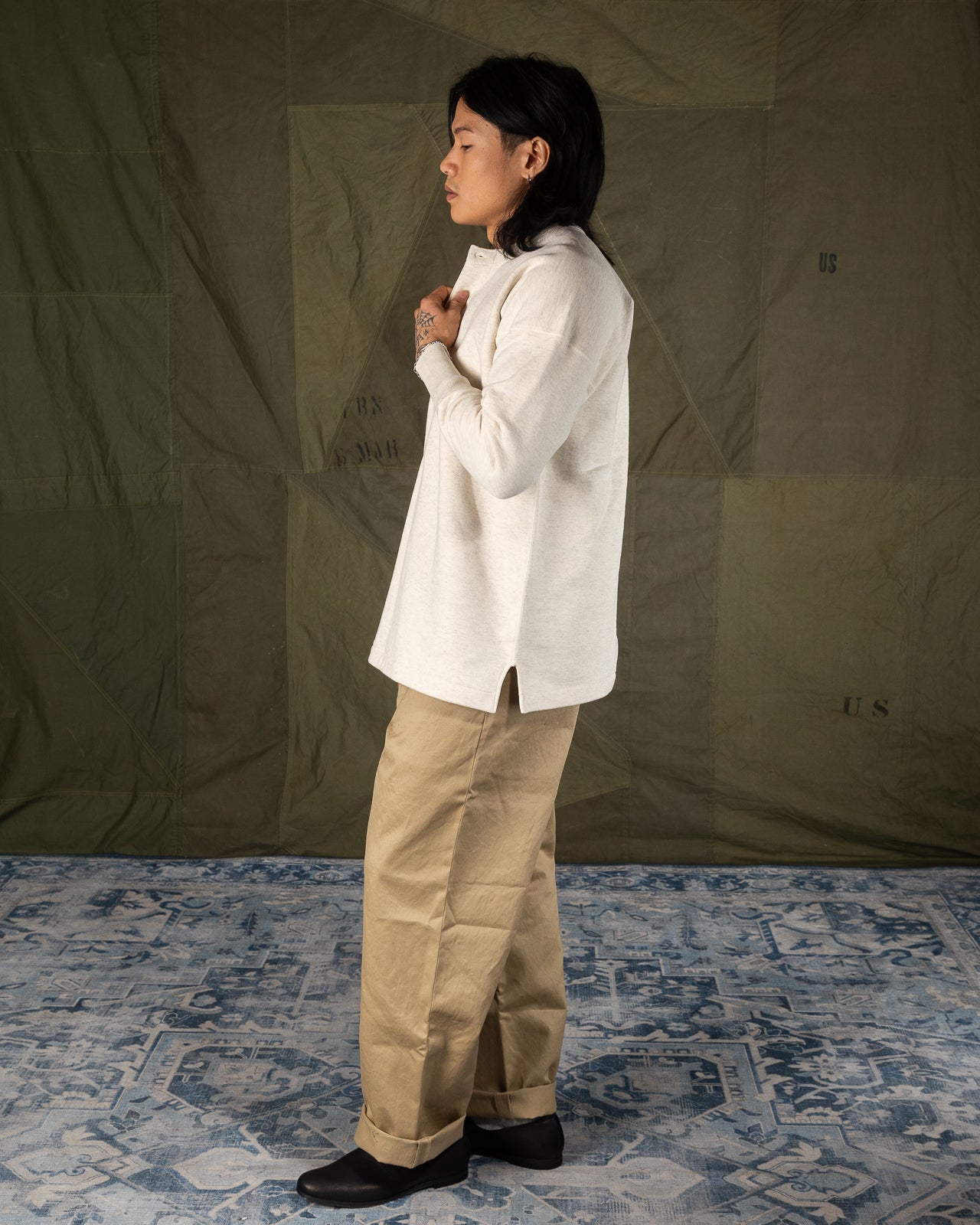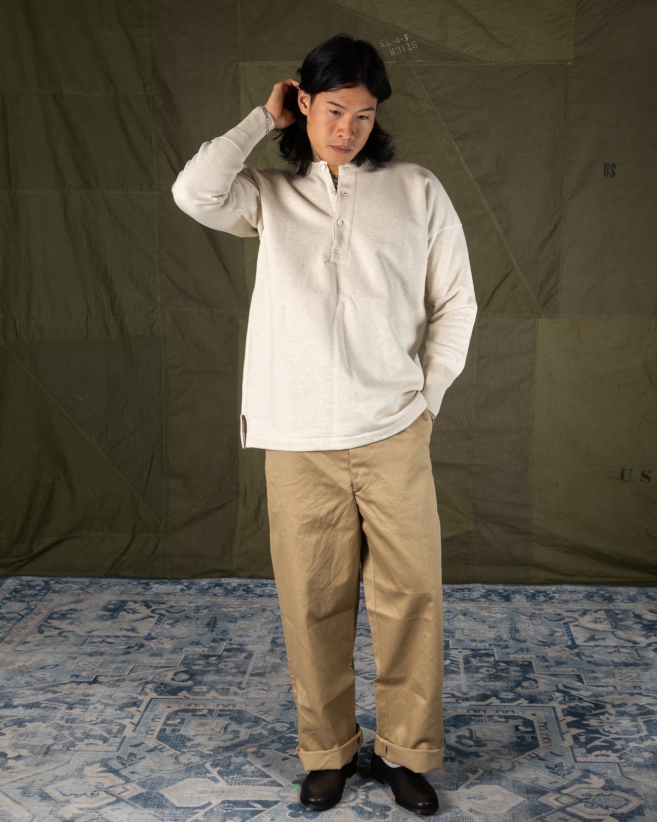 Cotton Fleece Henley Neck L/S - Ecru Heather