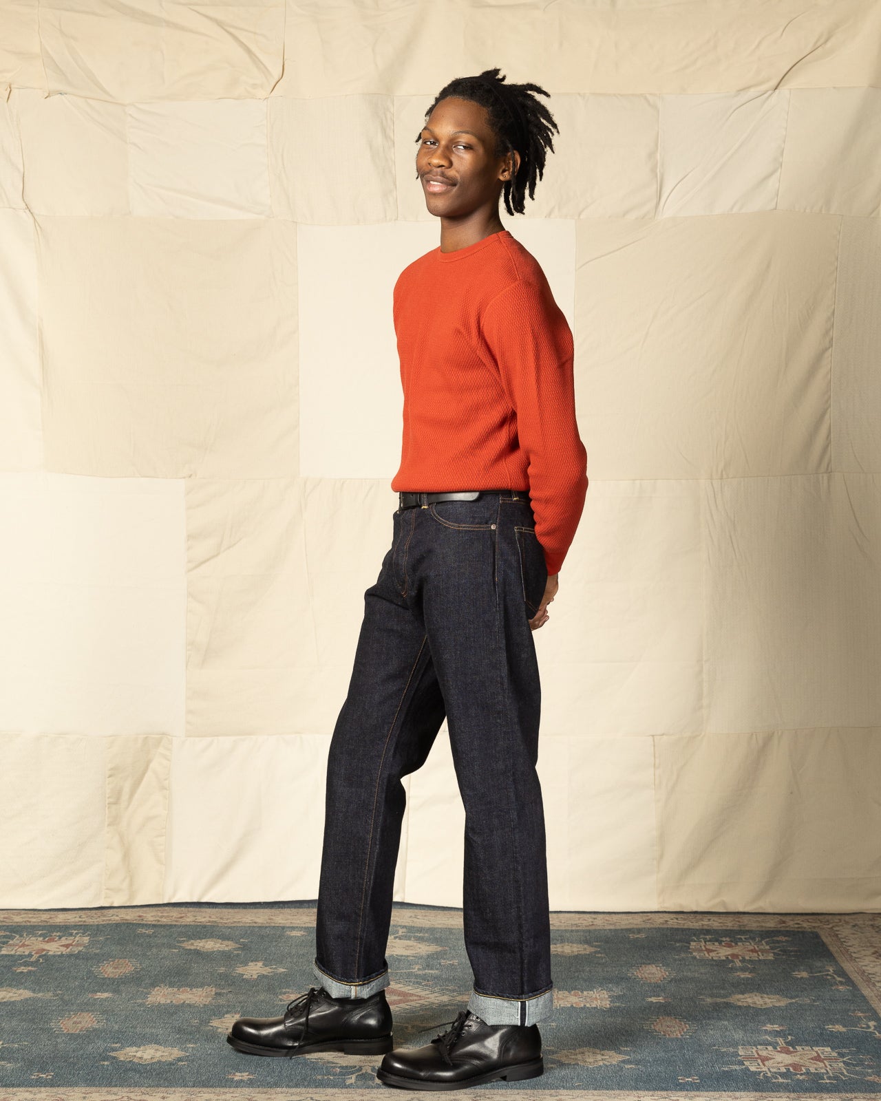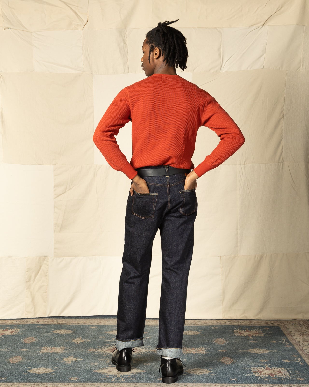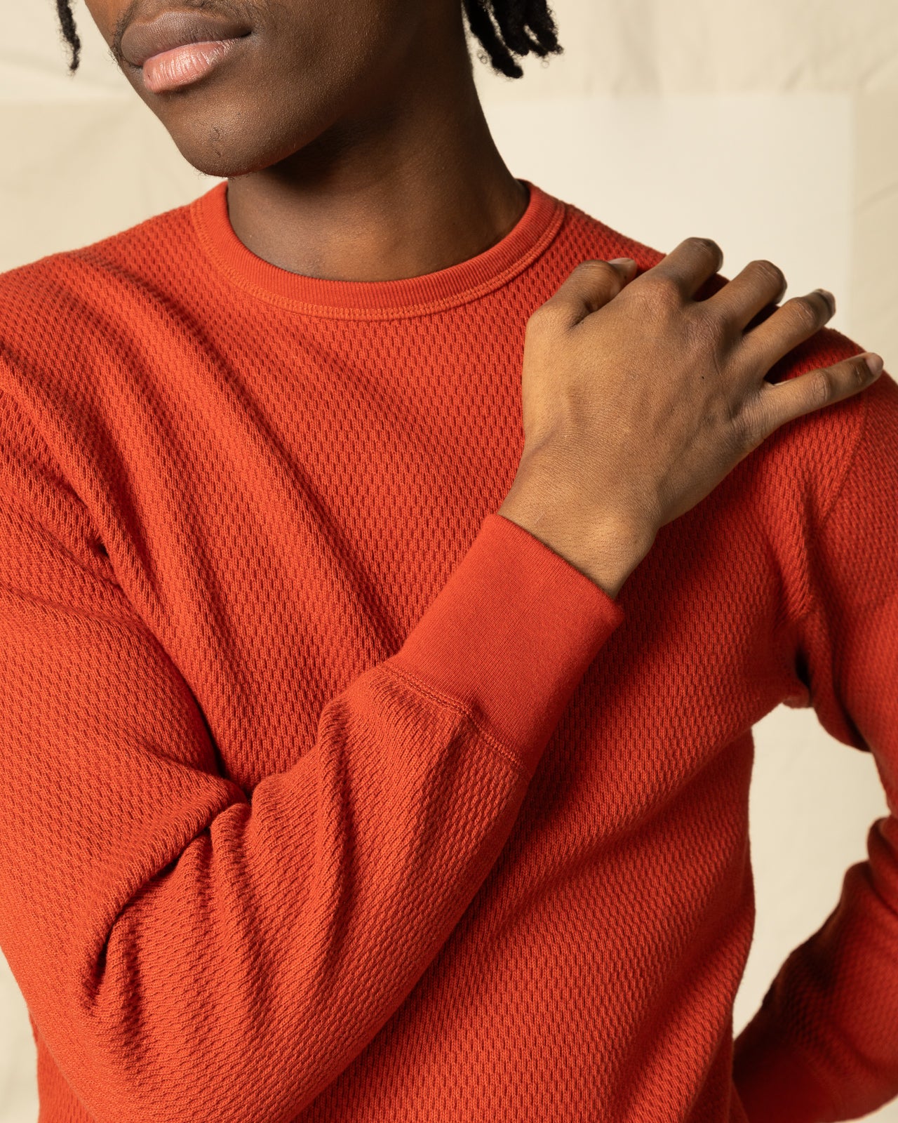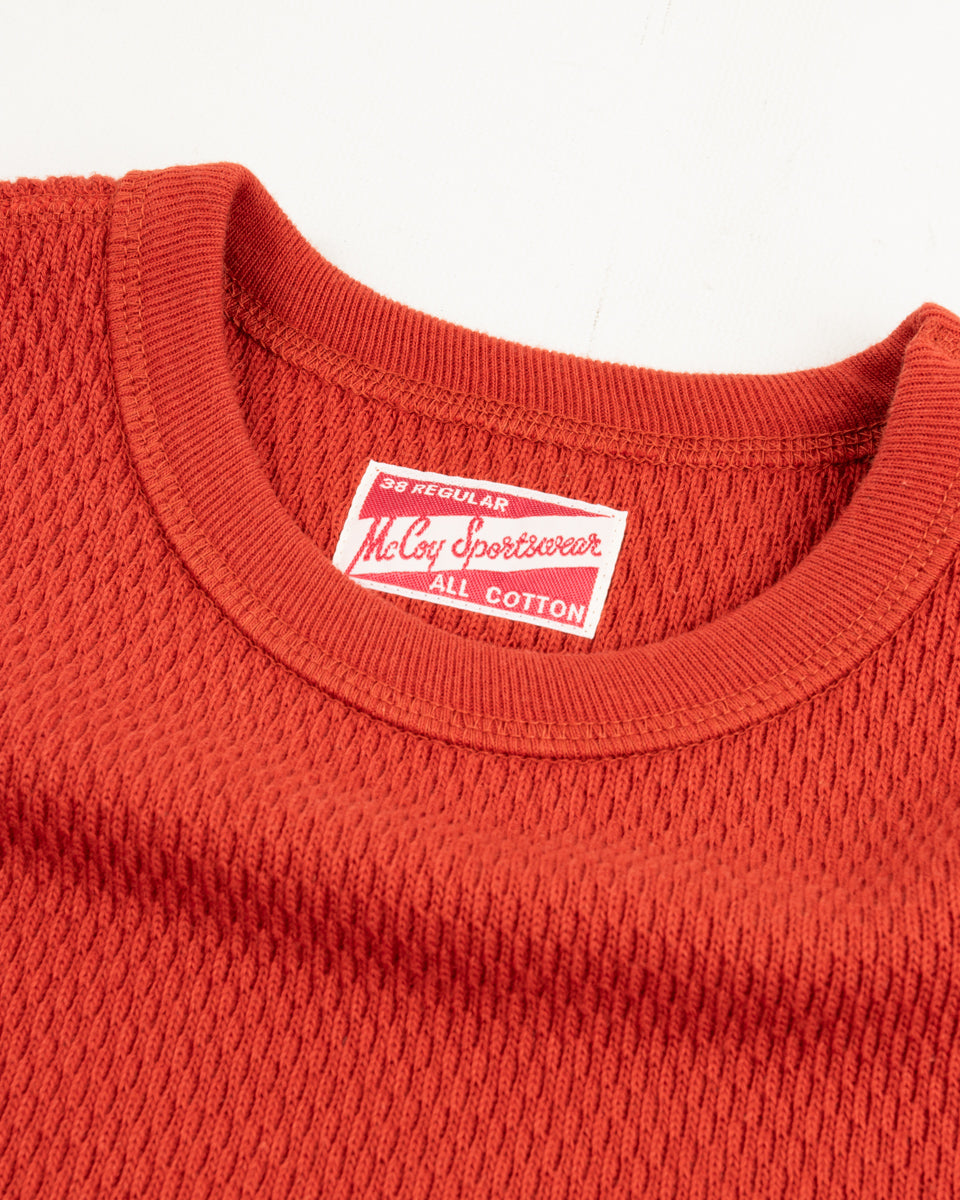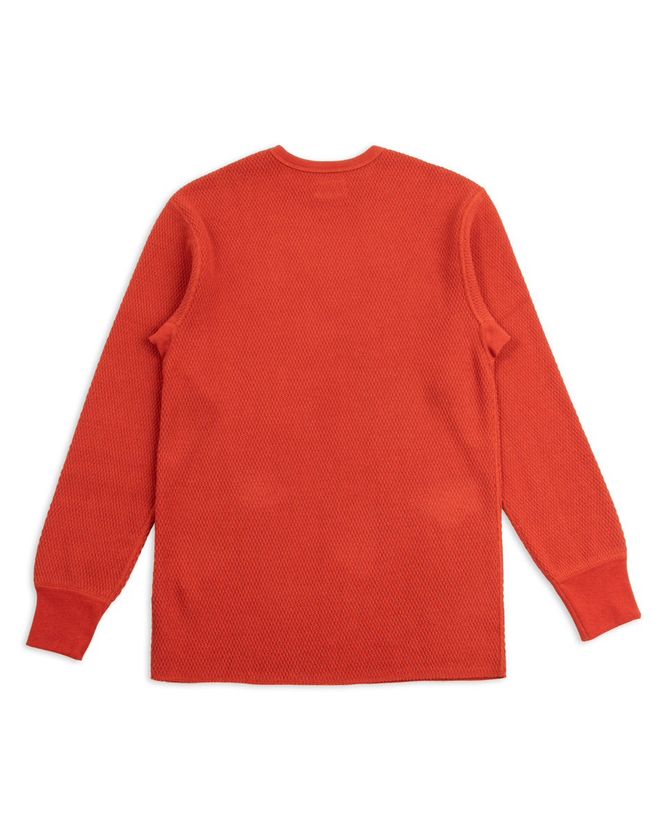 Adapted from their military thermal shirt block, the Honeycomb Thermal is another staple piece elevated by The Real McCoy's obsession to detail. Unlike most thermal shirts, this uses a three-dimensional raschel knit, which creates extra loft and warmth compared to a simple waffle knit. The resulting shirt is very substantial, and can be worn alone as a sweatshirt. The neck binding is a matching cotton rib, and the seams all feature vintage-style flatlock stitching.
