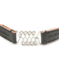 Antique cars, such as the famous Ford Model-T featured spring straps to hold the hood of the car down. RDT have reproduced these springs for their special belts, fixing them to one side near the buckle for additional flexibility and comfort. The additional mechanical elasticity granted by this spring keep the fit as comfortable as possible throughout the day - whether you've just finished a four course meal or not.
