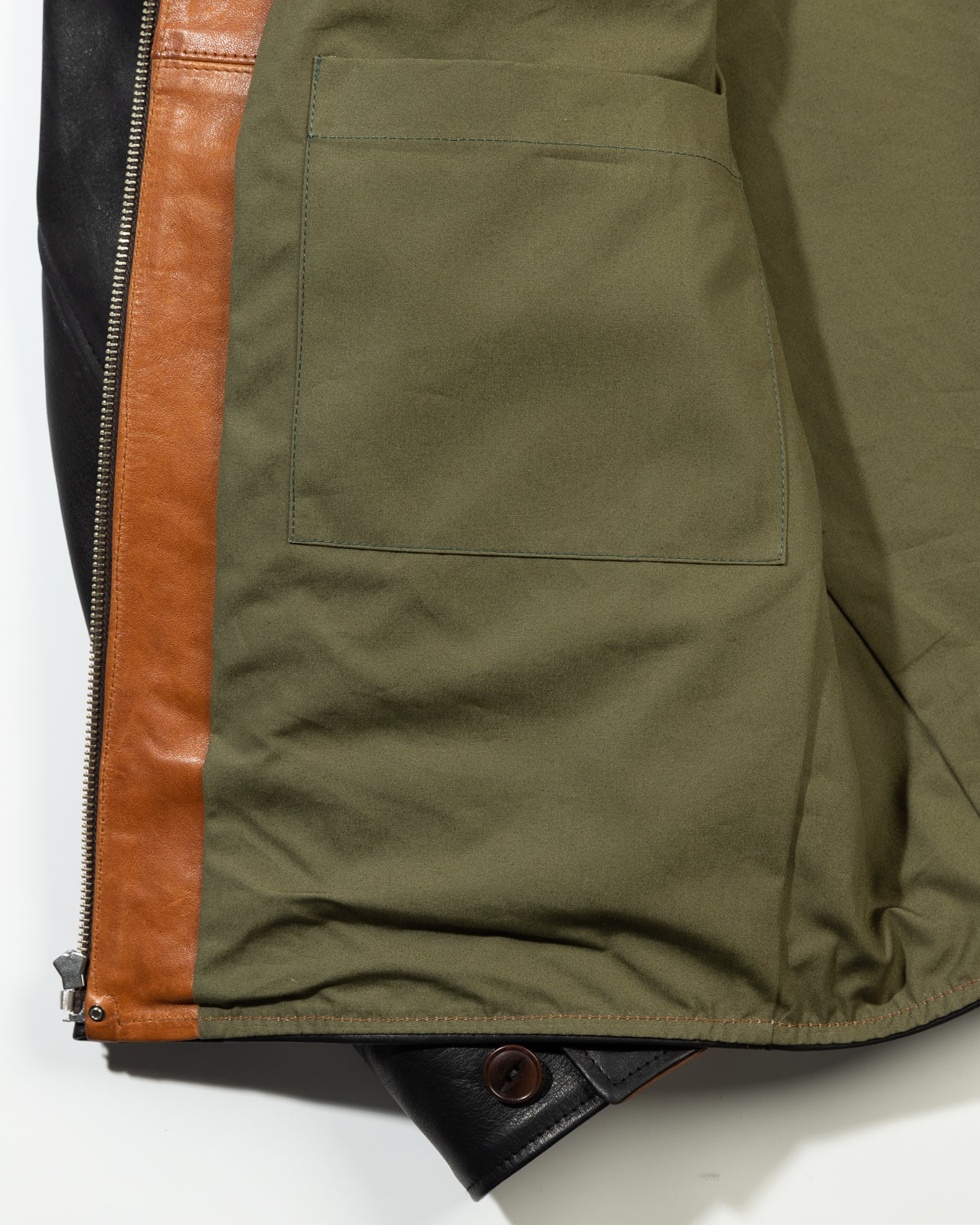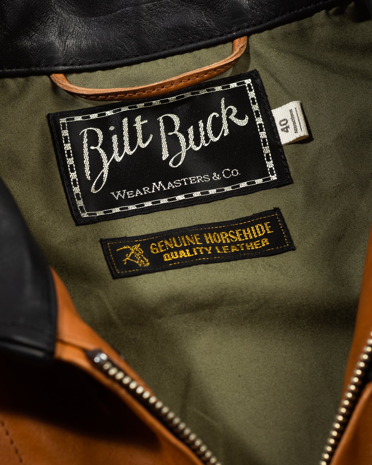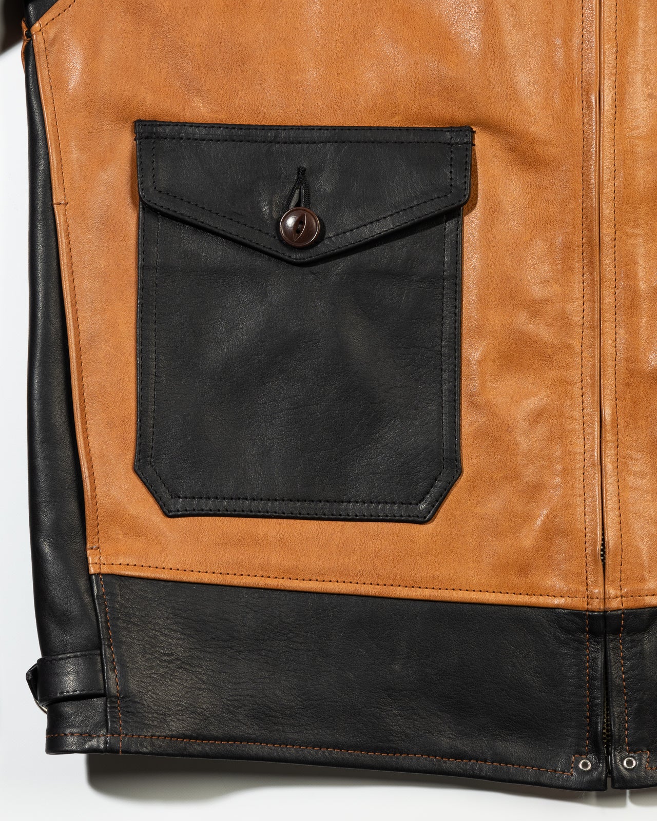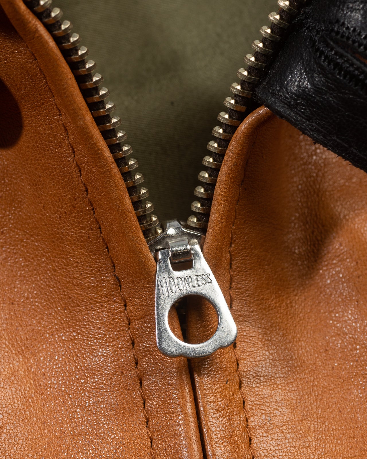 The Horsehide A-1 by Attractions is less military and more sportswear (but like, 1930s style sportswear), landing in the camp of casual leather jackets that can be styled with a bit more versatility than biker or flight jackets. It's made from a two-tone arrangement of brown and black horsehides, with a subtle drape that will grow more pronounced as the leather relaxes over time.