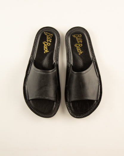 Attractions Horsehide Sandals are a really elevated and durable leather sandal with a full stitchdown construction that allows them to be re-soled after they begin to wear down. They stand on a Vibram crepe sheet outsole, with a plush feel and traction outsole that performs excellently on dry surfaces. The insole in padded throughout the entire footbed for maximum comfort, with stamped "BILTBUCK" logos on each heel.