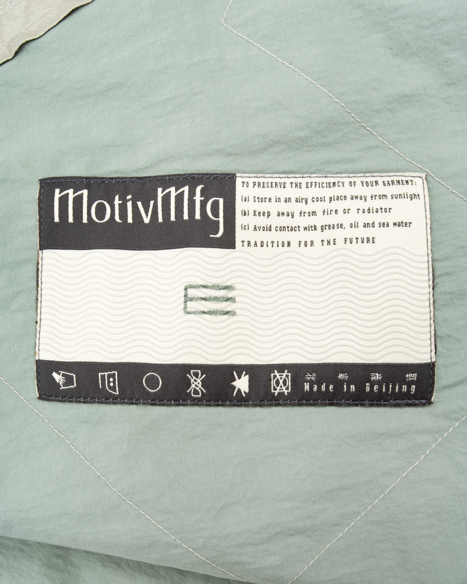 MotivMFG is headed by Samuel Wei, founder of Radiance Blue and the pioneer of the heritage market in China; and Daniel Gu, a third-generation tailor and designer. Together, they combine old-world tailoring (from various antique European manuals) with workwear production techniques. Constant research into garment production techniques around the world informs their design, with the goal of creating “recreations” rather than “reproductions”