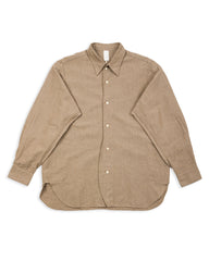 The Inside Pockets Shirt is an extremely elegant button up shirt with a relaxed fit and a curved placket. The chest and sleeves are breezy and open, with a clean front that has no pockets - there are pockets however, sewn into the inside of the shirt at each hip, and they're surprisingly large. Like other Senui shirts, it lacks any side seams, with only the placket itself and the singular back seam breaking up the construction of the body.