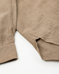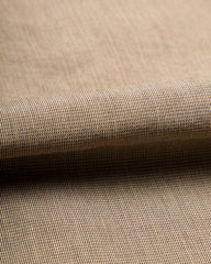It's made from a russet brown cotton/linen blend with a tightly-woven face and subtle textural details. The drape is comfortable, sturdy without being stiff or cumbersome, and like any good linen it breathes exceptionally well and dries quickly in hot weather. The cotton content helps prevent the more pronounced wrinkles that linen is known for, adding additional durability and structure to the yarns.