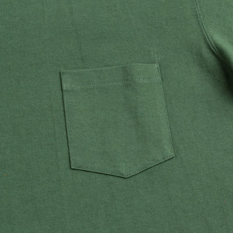 The fit is classic, a nice rectangular body, two short sleeves, and a single chest pocket. Relaxed enough to wear tucked or untucked comfortably, and always available in great colors, it's the type of tee you won't regret having 4 or 5 of in your wardrobe. While not a true loopwheeled garment, they are tubular knit, with no side seams, and garment-dyed so it will fade over time like a vintage piece.