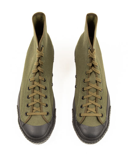 Produced exclusive for Attractions at the renowned Moonstar factory in Japan, the Jumpin' High Shoes are a custom and extremely robust old school military trainer. With a heritage of shoemaking that reaches back to the late 1800s, Moonstar produces exceptional sneakers in Kurume, Japan. Built to last, Moonstar's sneakers use heavy vulcanized, kiln-fired rubber outsoles - a process that helps bond the outsole together and create an even more durable shoe.