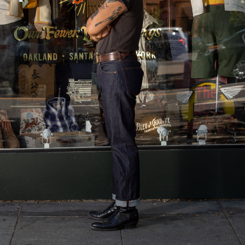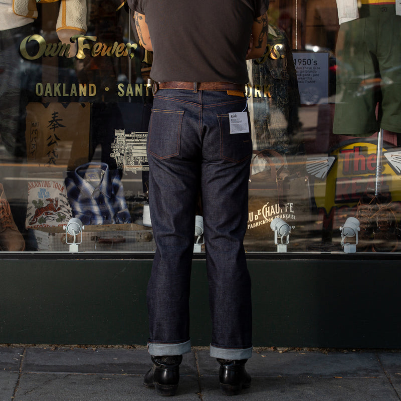 Indigofera's Kirk is in our top 5 favorite denim fits of all time. With a nice high rise, full thighs and wide straight legs, the Kirks are unrestrictive, very comfortable and responsive (like modern web design). The wider leg is as versatile as any silhouette, despite what skinny-jeans-enthusiasts might tell you, as these look great with boots, sneakers, recovery sandals, and really whatever else you felt like pairing them with.