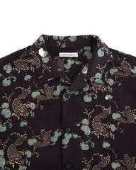 Lake Camp Shirt - Silk/Cotton Iron Black Roving Koi Print