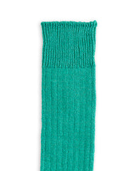 Linen/Cotton Ribbed Crew Socks - Aqua Green