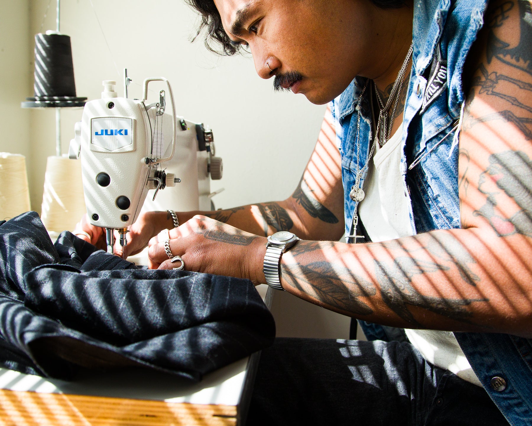Our hemming services are conducted in-house by trained members of the S&S team. We're happy to help measure you for a hem in-store at any of our locations, but the actual hemming is only done in Berkeley and NYC currently. We do accept hems via mail, but this needs to be arranged with us first.