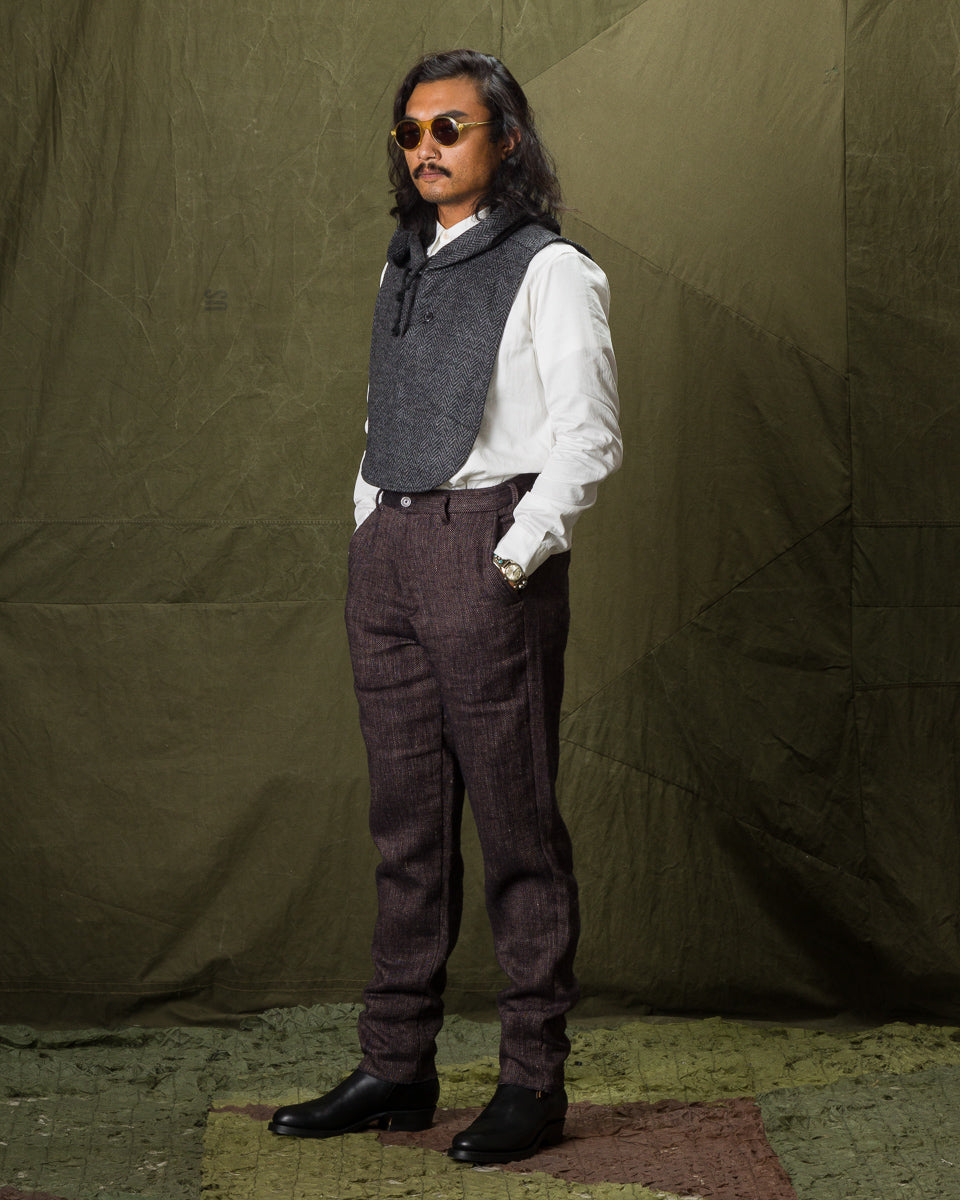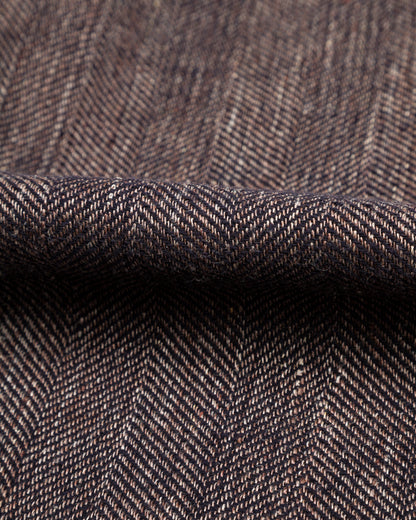 It's made from 1st PAT-RN's new Re-Tweed herringbone twill, a custom fabric produced with a more much softer hand and a more fluid drape than other more traditional tweeds. Woven it Italy, it's made from a blend of cotton, linen, wool, and nylon to achieve the desired softness without sacrificing durability, with an airy weave that feels almost like a knit fabric.