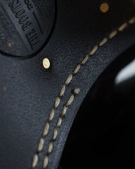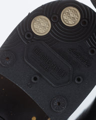 The vamp and heel are made from a "lightweight" black horsehide that features a pronounced tea core effect - meaning the black dye has not penetrated beyond the surface of the leather, and over time the brown interior will be revealed as the dye wears away. The expertly selected horsehide will form appealing rolls as it wears in, differing from the more tight creases that aged cowhide will develop.