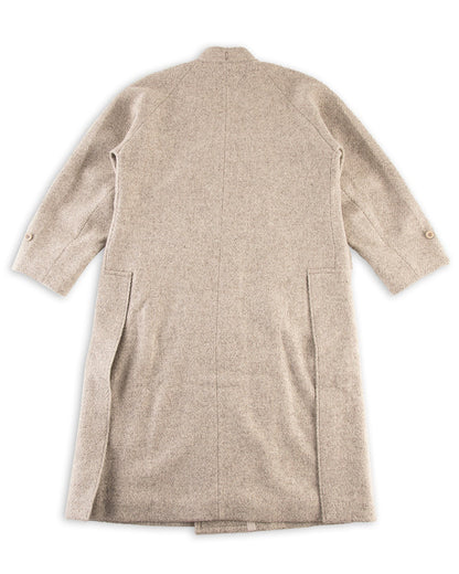 The Mandarin Coat is a seriously heavy duty raglan coat, with a generous fit and a convertible hood/stand collar. The hood can be worn closed as a mask as well, emulating the hood of US military CWU-8P jackets, and the front secures shut with heavy tonal buttons in a double-breasted stance for additional resistance to the elements. Cut with a subtle A-line silhouette, the back features two large vents above the hem for better drape and movement, given that this is a full length coat.