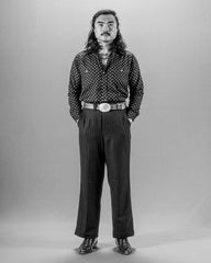 This batch is made from a 100% cotton herringbone dobby fabric, with a discharge-printed design across its exterior. It's soft and comfortably lightweight, a great fabric for the summer season, layering easily and breathing well.