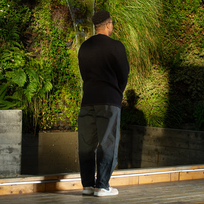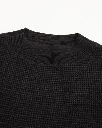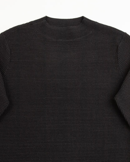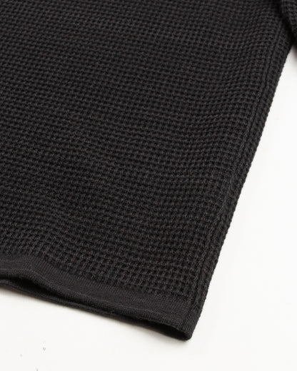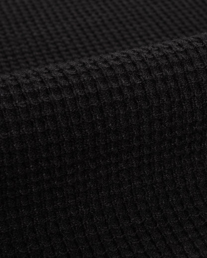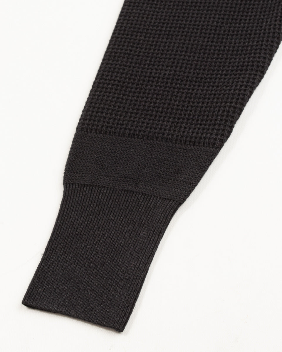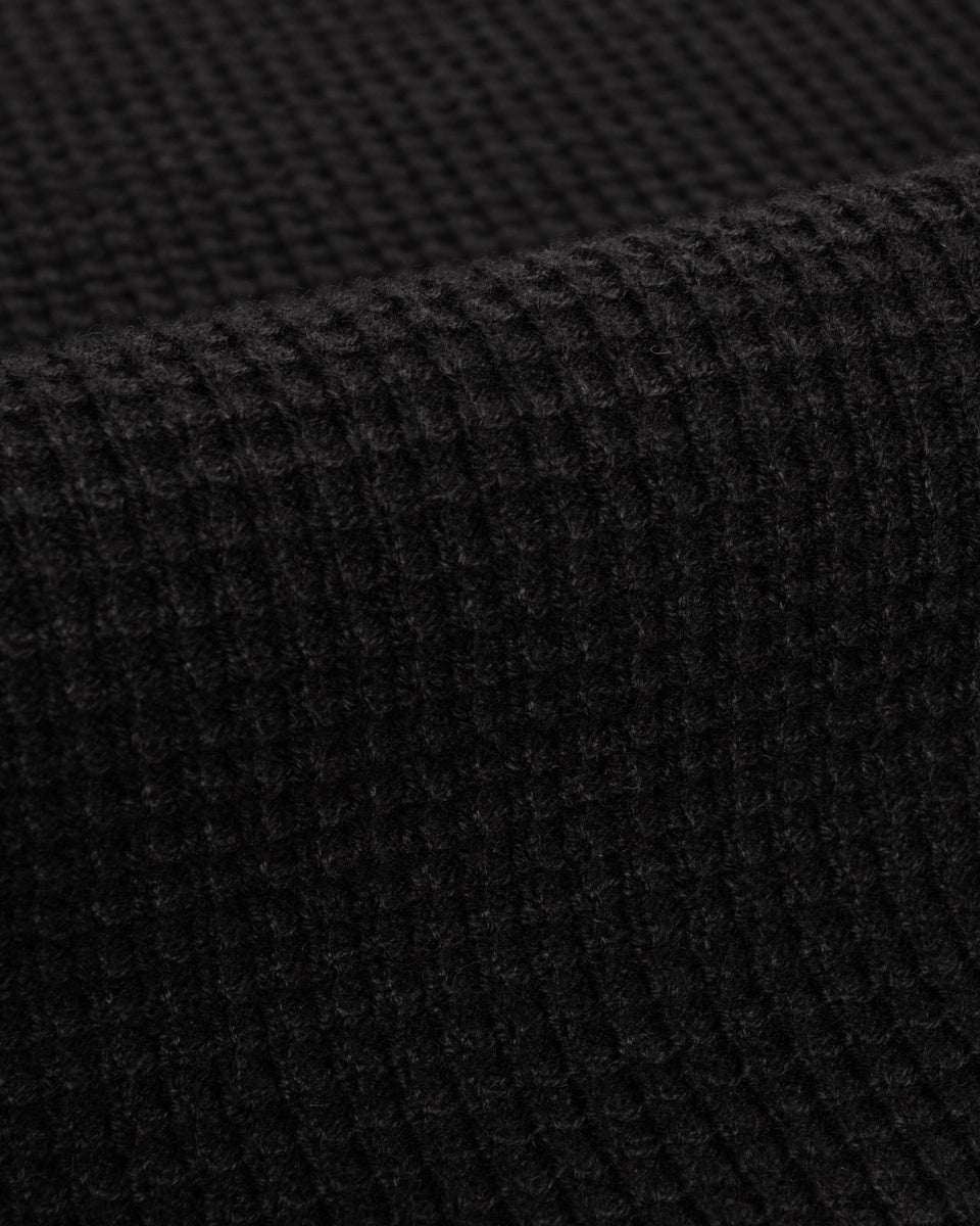 Micro Waffle Thermal Knit - Black Wool Linen Cotton Micro Waffle Knit