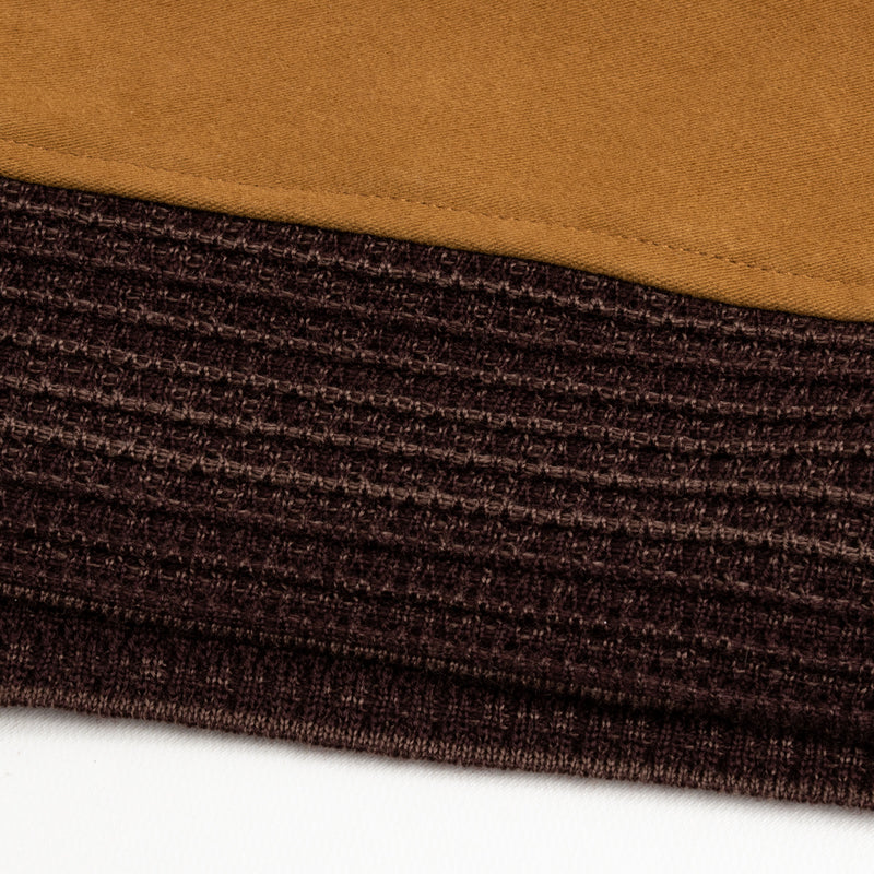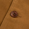 It's made from a sturdy brown moleskin - not too heavy or light, it's as wind resistant as cotton can be, and shockingly soft to the touch. Though it can be a bit more rigid at first, the fabric quickly breaks in and takes the shape of the wearer, relaxing as it is worn.