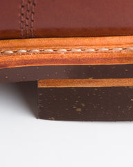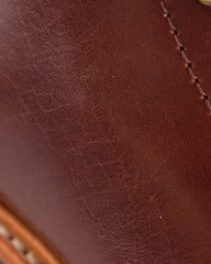 These are sewn up in Timber brown horsebutt from the Shinki Tannery in Japan, one of the premier horsehide tanneries in the world. This remarkable leather features a glossy finish and a gorgeous grain texture that ranges from subtle to incredibly prominent. Unlike cowhide, horsebutt tends to roll rather than crease over time, giving them a more subtle and graceful aging process.