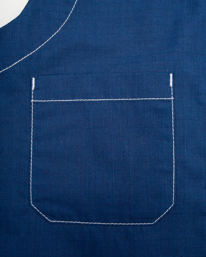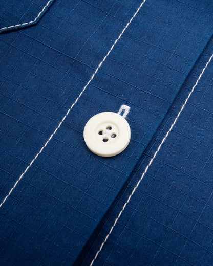 It's made from a lightweight Japanese cotton ripstop fabric with a relaxed drape and breezy feel. It's finished with a Japanese indigo dye, imbuing the garment with a rich blue color that will gradually fade over time as the indigo particles separate from the cotton yarns.