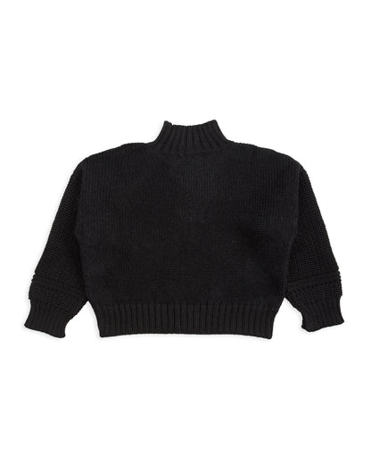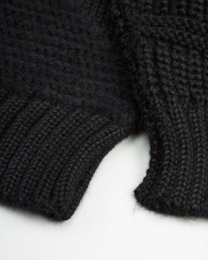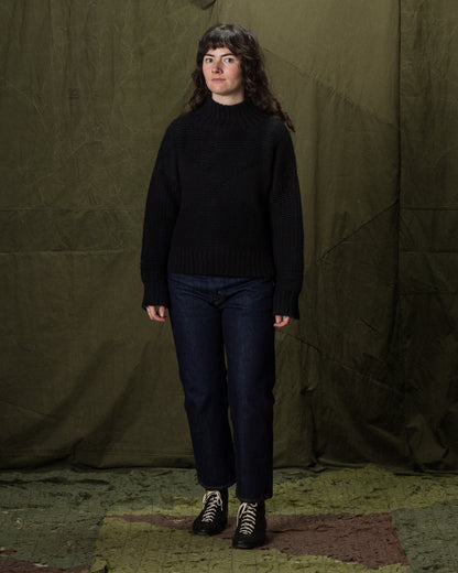 The Nadia Diamond Sweater is a heavyweight alpaca mock knock sweater with a blocked diamond pattern across the front and a relaxed, boxy fit. Every part of it is substantial, made in Peru from locally-sourced alpaca & pima cotton yarns, with thick ribbing at the hem and neck as well as a unique cuff detail.