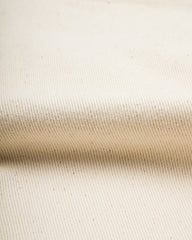 It's made from Indi + Ash's powerloom (meaning not handwoven) cotton canvas and left undyed for a natural cotton exterior. Over time, the canvas will take in pigments from the outside world as your wear them, resulting in a unique and handsome patina across the fabric's surface. It's surprisingly soft from day one, despite its respectable medium weight, and drapes excellently for a summer fabric.