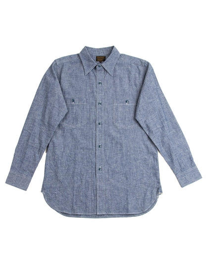 Open Pocket Working Chambray Shirt - Light Blue