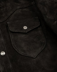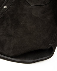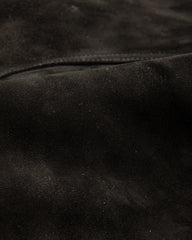 It's made from a deep black "reverse" goatskin - which is to say that they flipped the hide so that things are suede-side-out and smooth-side-in. Tanned by Tustin & Burnett in England, it's immediately soft and comfortable, requiring virtually no break-in and quickly taking the shape of the wearer's body. Over time, the suede will wear down to a more smooth texture in areas that regularly experience abrasion, developing a unique and handsome patina.