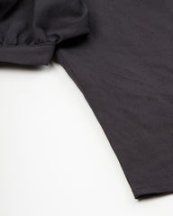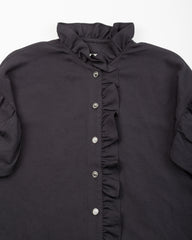 The Play Shirt is aptly named, with a design that's both stylish and fun taking inspiration from the illustrations of Mary Petty, featuring balloon sleeves and ruffle details at the collar, placket, and cuffs. With a fairly natural fit through the torso, the silhouette is exaggerated beyond the shoulders, terminating in short sleeves that are perfect for hot weather. Even with the embellishments, the overall cut is relaxed and easy, great for layering, but also great on its own.