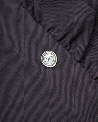 It's made from a soft black linen/acetate blend fabric. Milled in Japan, it's soft and airy, with a luxurious hand feel and a gentle drape throughout.
