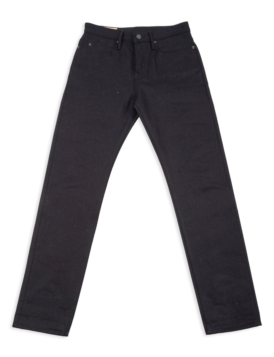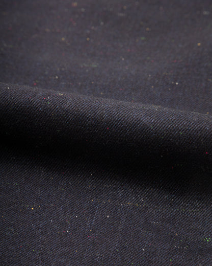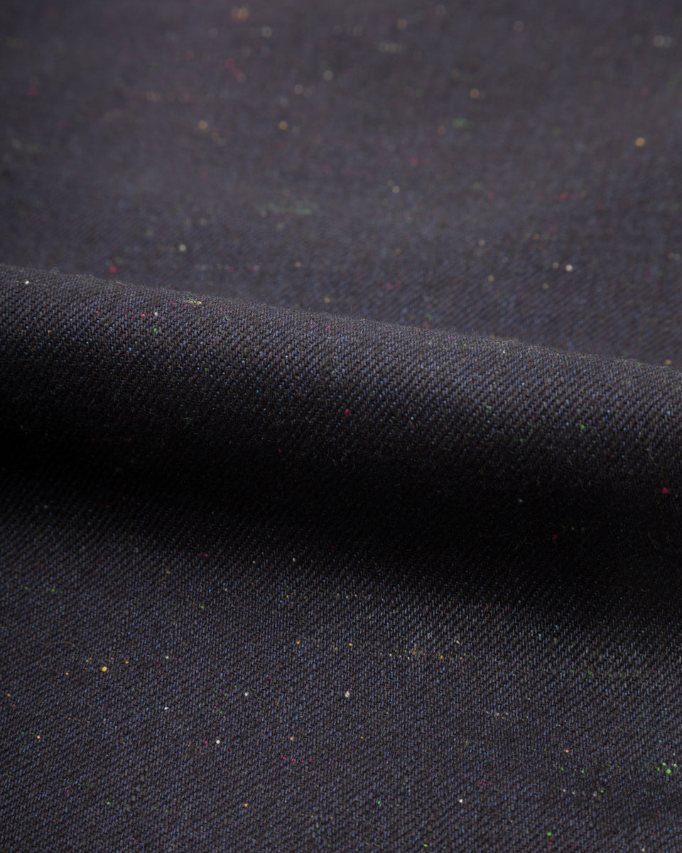 This time around, it's made from a 14oz double indigo selvedge denim from Japan with rainbow neps throughout. A little stiff and sturdy at first, it will soften nicely with a wash, gaining a more relaxed drape without losing their heft and durability. The double indigo body will fade slowly, developing high a contrast patina over time and revealing the rainbow neps more prominently.
