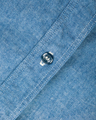 It's made from a crisp cotton chambray fabric for the Spring/Summer season, with a washed finish that softens and breaks-in the fabric before you ever put it on. The garment is held together with heavy flat-felled seams and bartack reinforcements, closing up with tonal buttons along the placket, pockets, and sleeves. Both the fabric and the garment itself are built to last, intended to be worn for years and years, developing a unique patina over time as the indigo fabric fades and wears in.