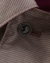 The Reversible Cycling Trench is exactly that and so much more, effectively two coats in one, it's a robust piece of outerwear with a solid burgundy face and a micro houndstooth face as an alternate. Taking inspiration from long coats worn by cyclists throughout history, it's got a vented hem and ample pocket space, as well as a covered placket and ventilation eyelets to help it dry should you get caught in the weather.