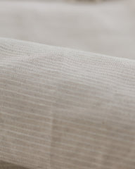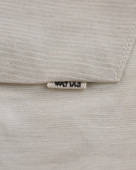 Made from an almost 50/50 blend of linen and cotton, the Tamashi fabric has a crisp, cool hand and pleasant structure that will soften over time, relaxing into the shape of the wearer's body. It's woven as a subtle stripe jacquard, with horizontal lines and a unique texture that becomes more apparent on close inspection. Linen/cotton blends tend to feature more of the strengths of each fibre and fewer of the weaknesses, and this is no exception - it's airy and fast-drying like linen, with a subtle drape throughout, as well as the comfort and durability of cotton.