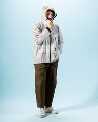 Another really cool technical garment, the Sheer Rain Jacket is made from a translucent nylon cloth that's highly-resistant to water and wind. Cut with a relaxed body and a zip placket, the hood features a high neck and adjustable drawstrings for extra security, and the front of the jacket includes two angled zip pockets for storage.