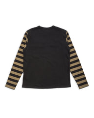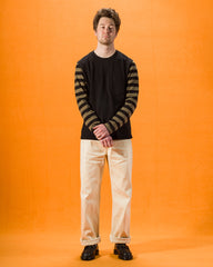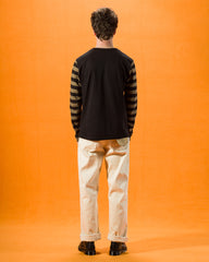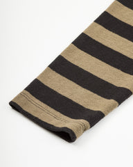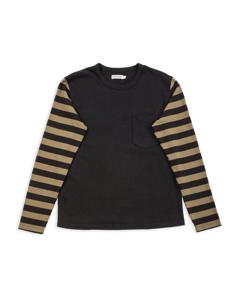 The cut is pretty stellar, long enough to wear tucked or untucked without looking confused, while the chest is just roomy enough to move freely in, but cuts a clean silhouette. The sleeves are done in a yarn-dyed horizontal stipe pattern (could be vertical, depending on how you look at it too, I suppose), as a result of the yarn-dyeing, the stripes will stay fresh looking through many washes and many more wears.