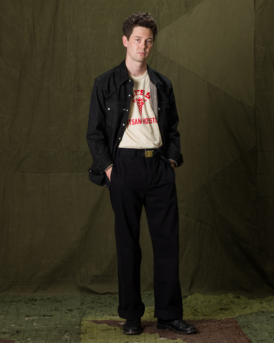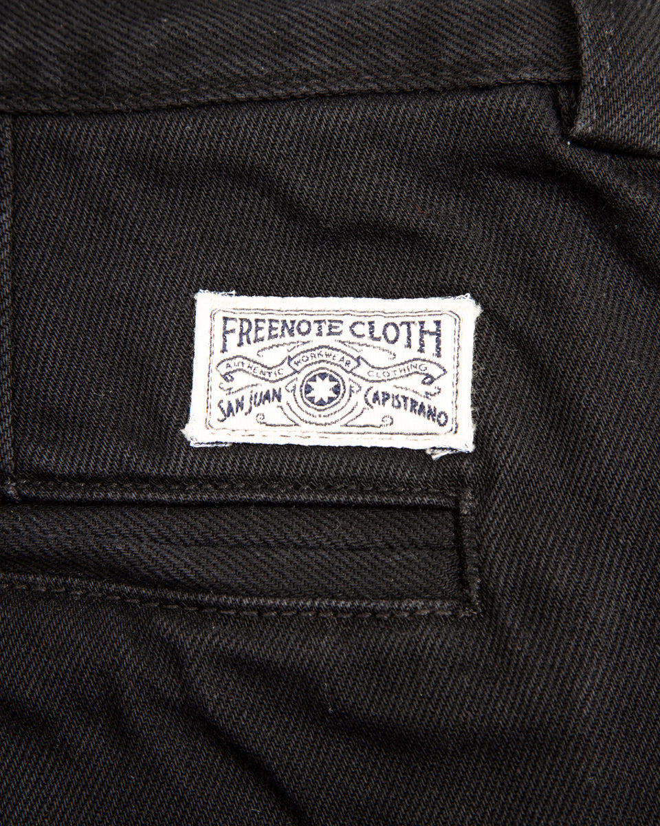 The finishing details are on par for Freenote, with a high quality zip fly and custom branded top button, flat felled seams, and darting through the seat for shape. The cuff is extra tall, inspired by workwear trousers from the 1940s, and the belt loops are extra thick.