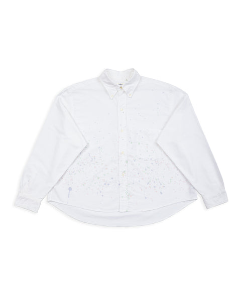 The Short Button Down Shirt is OrSlow's staple Women's shirt, with a wide and almost-cropped body that cuts a more exaggerated and relaxed silhouette. It's got a tonal button placket, with a button-down collar, a single chest pocket, and multicolored paint drips all over the front and back of the shirt.