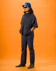 The Short Sleeve Hooded Smock is an excellent layering piece for the transitional seasons, with a relaxed fit, short sleeves, and a comfortable hood. It features two flap chest pockets and a slightly cropped body that makes it easy to throw on without needing too much thought, cutting a handsome silhouette when paired with a higher rise trouser.