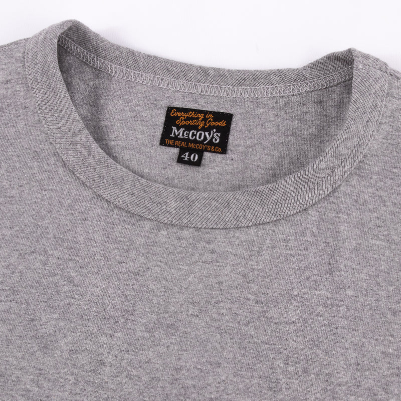 Every detail from the choice of cotton, to the graphic size, to the ribbing on the neck of this tee from The Real McCoy's is precise and exacting. It's a simple garment, done absolutely perfectly. The base is a Real McCoy's military tee, which is true t-shirt, as in it looks like a T when laid out flat, in proper vintage style. The Real McCoy's logo is printed on the left side of the chest.