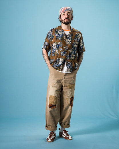 Silk Rayon CHAMPETRE MARIA WRANGLE Collar Aloha Shirt - BrownKhaki
